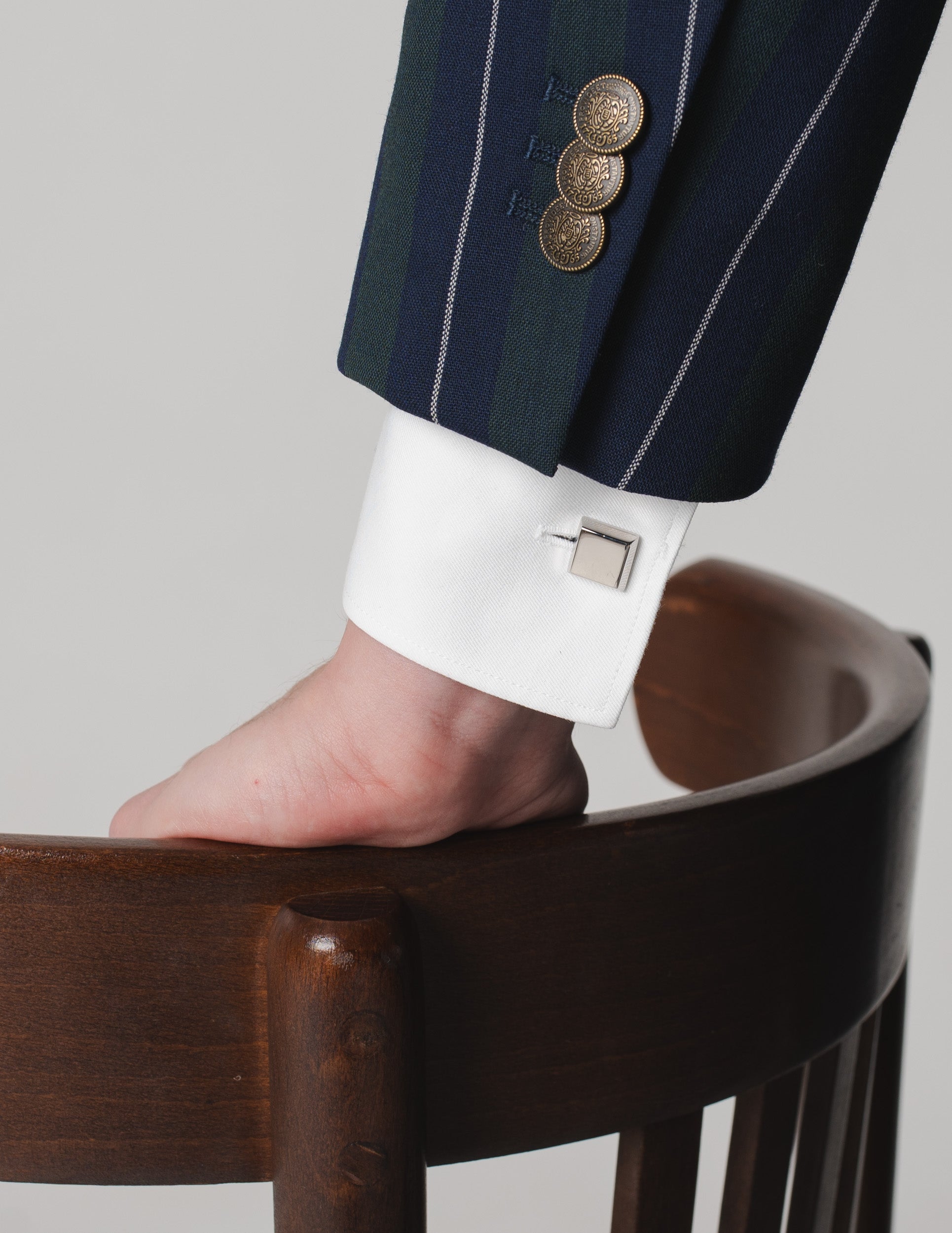 Subtelny minimalizm w najlepszym wydaniu. Te srebrzyste spinki do mankietów, w eleganckim kształcie kwadratu, są idealnym wyborem dla tych, którzy cenią sobie doskonałą jakość i ponadczasowy design. Wykonane ręcznie, zachwycają precyzją detali i uniwersalnym charakterem – perfekcyjnie dopełnią zarówno formalne garnitury, jak i mniej oficjalne stylizacje.