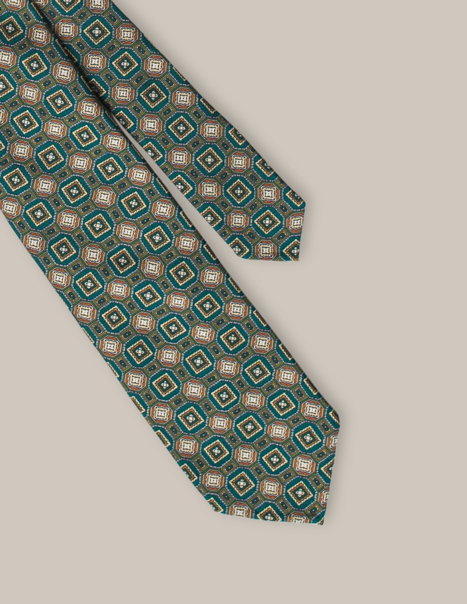 Krawat Verde Mosaic to ponadczasowy dodatek, który doskonale podkreśli charakter każdej marynarki, wprowadzając do niej odrobinę włoskiego stylu i elegancji.