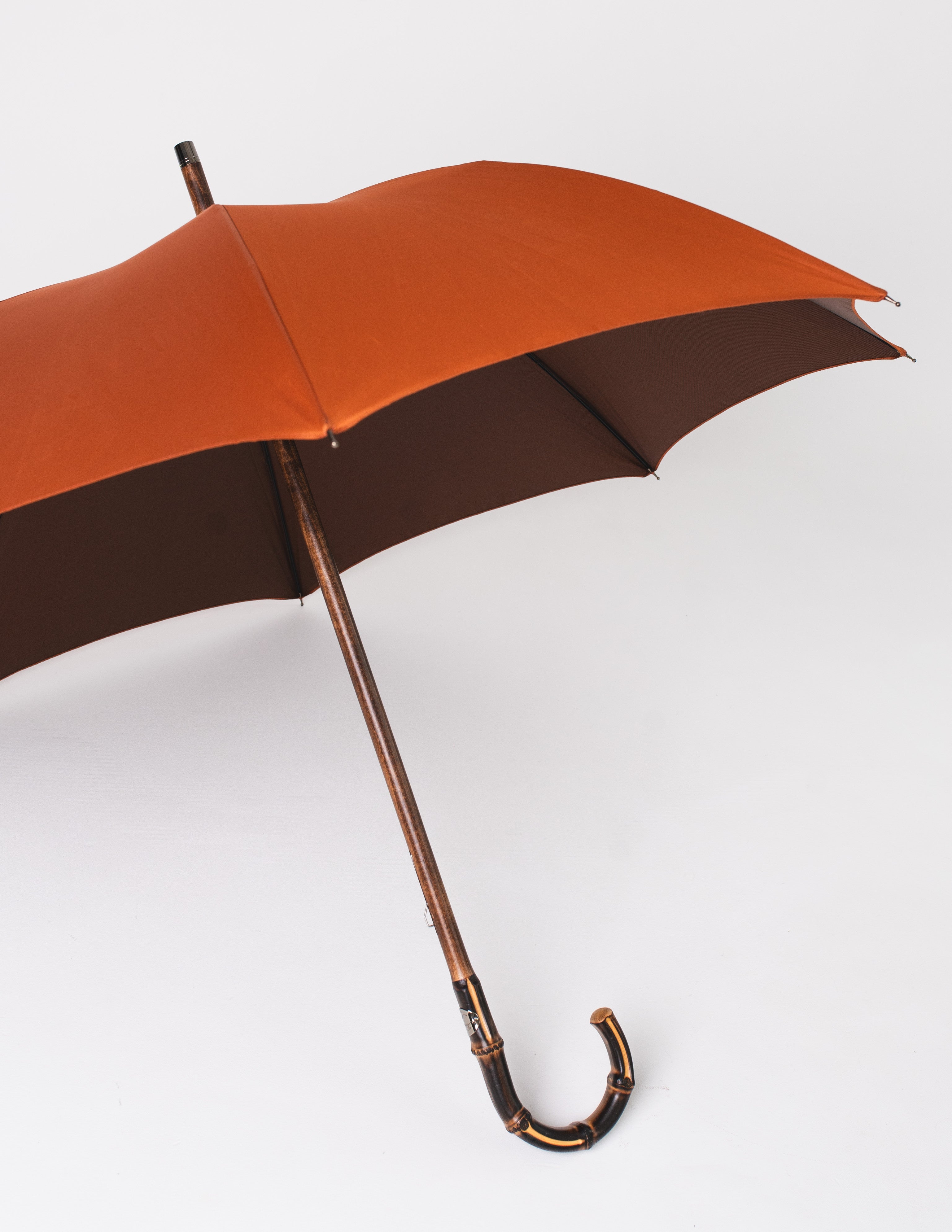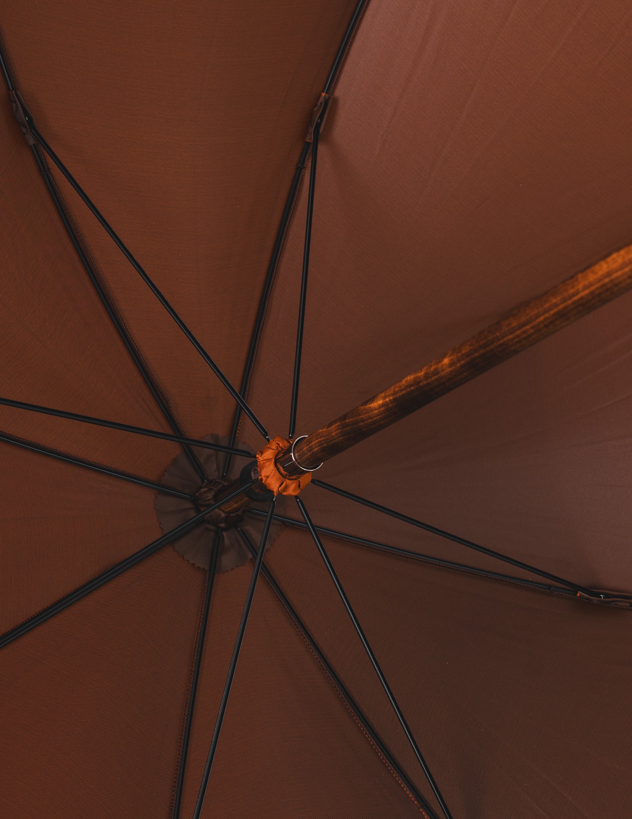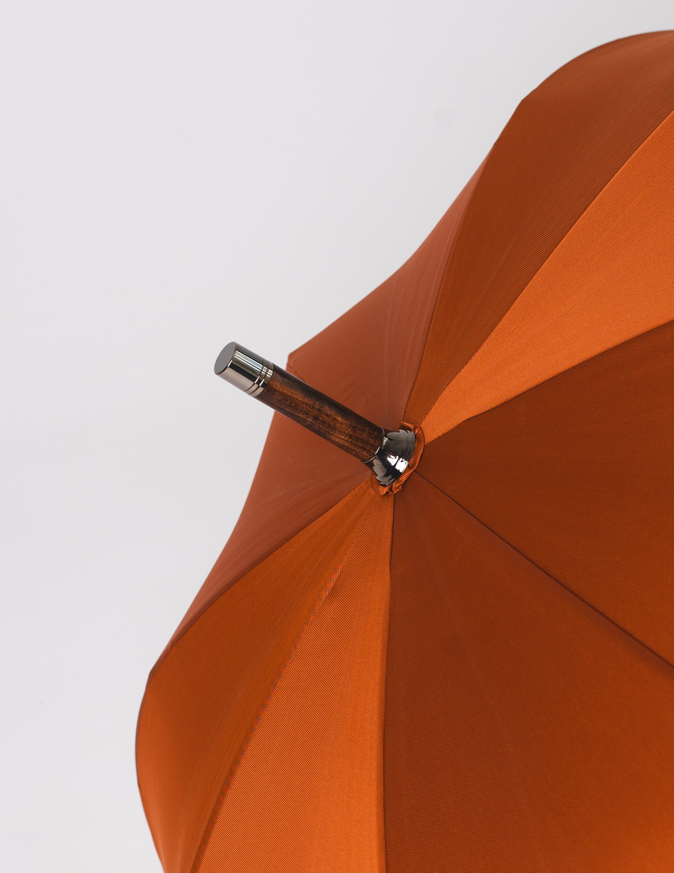 Ten parasol to harmonijne połączenie naturalnej estetyki i włoskiego kunsztu rzemieślniczego. Rączka wykonana z bambusa, o niepowtarzalnej fakturze i delikatnym połysku, przywodzi na myśl egzotyczne podróże i siłę natury, która inspiruje od pokoleń. Czasza w żywym, pomarańczowym odcieniu, uszyta z wysokogatunkowej tkaniny z Como, wprowadza promyk energii w nawet najbardziej pochmurne dni.