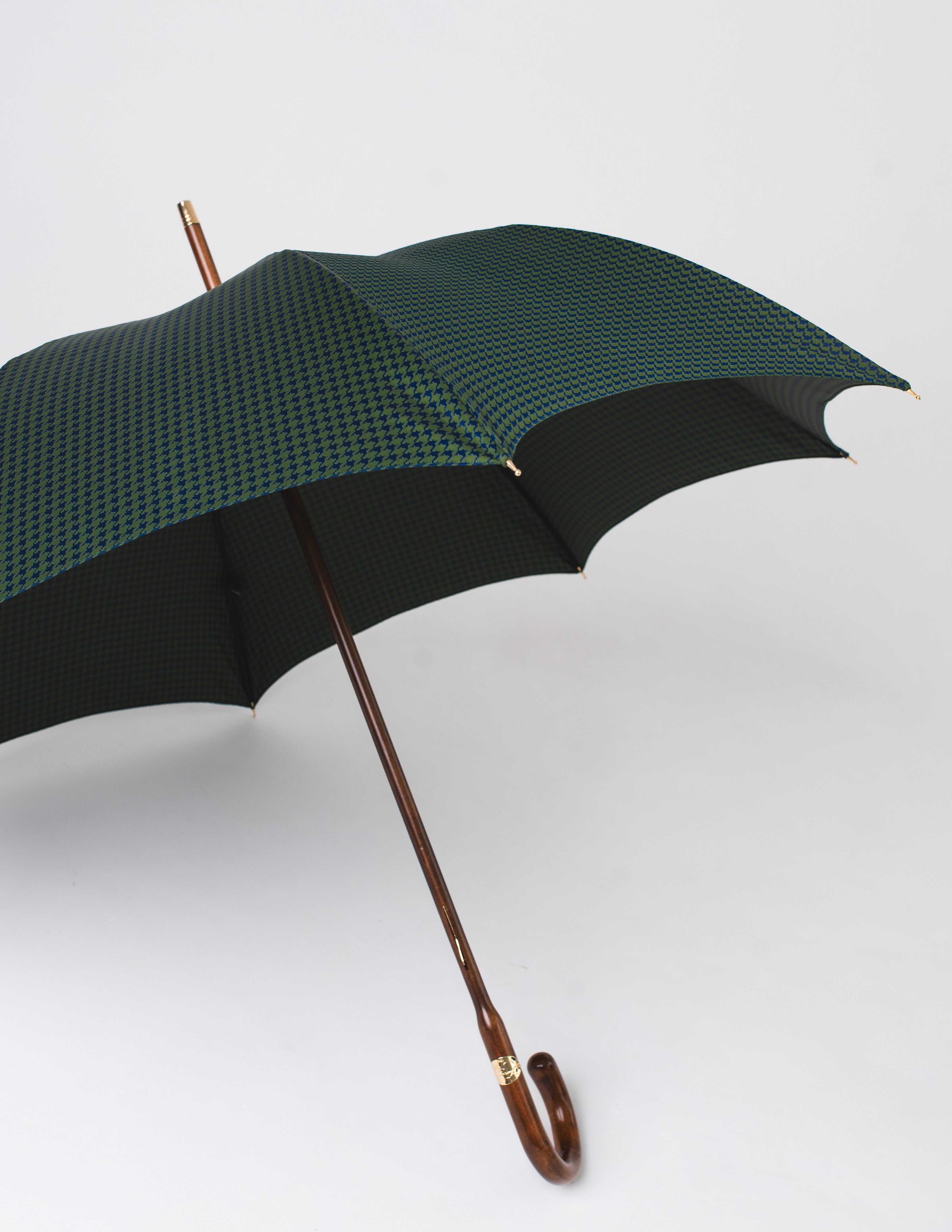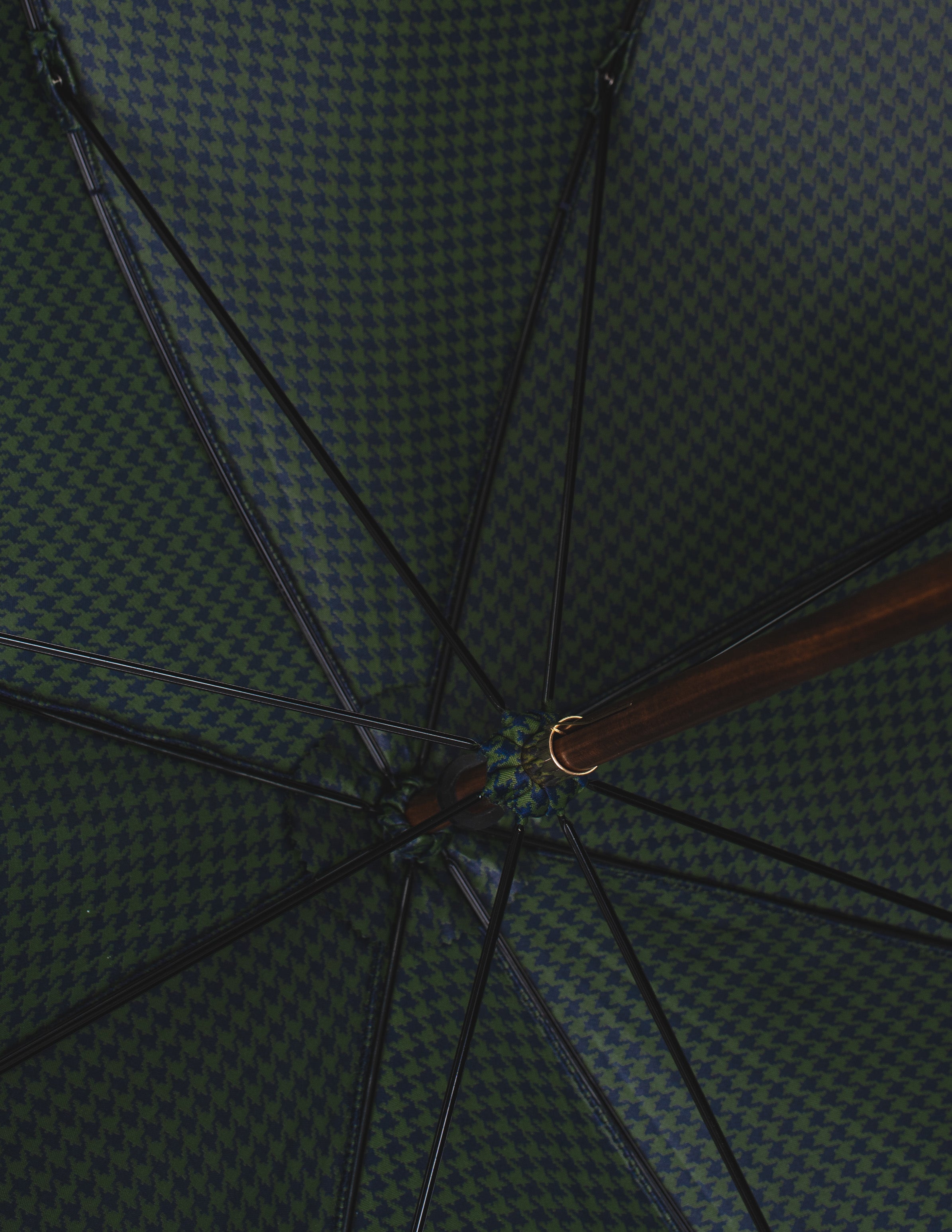 Parasol Francesco Maglia z rączką z ciemnego drewna klonowego i czaszą w ciemnozieloną granatową pepitkę