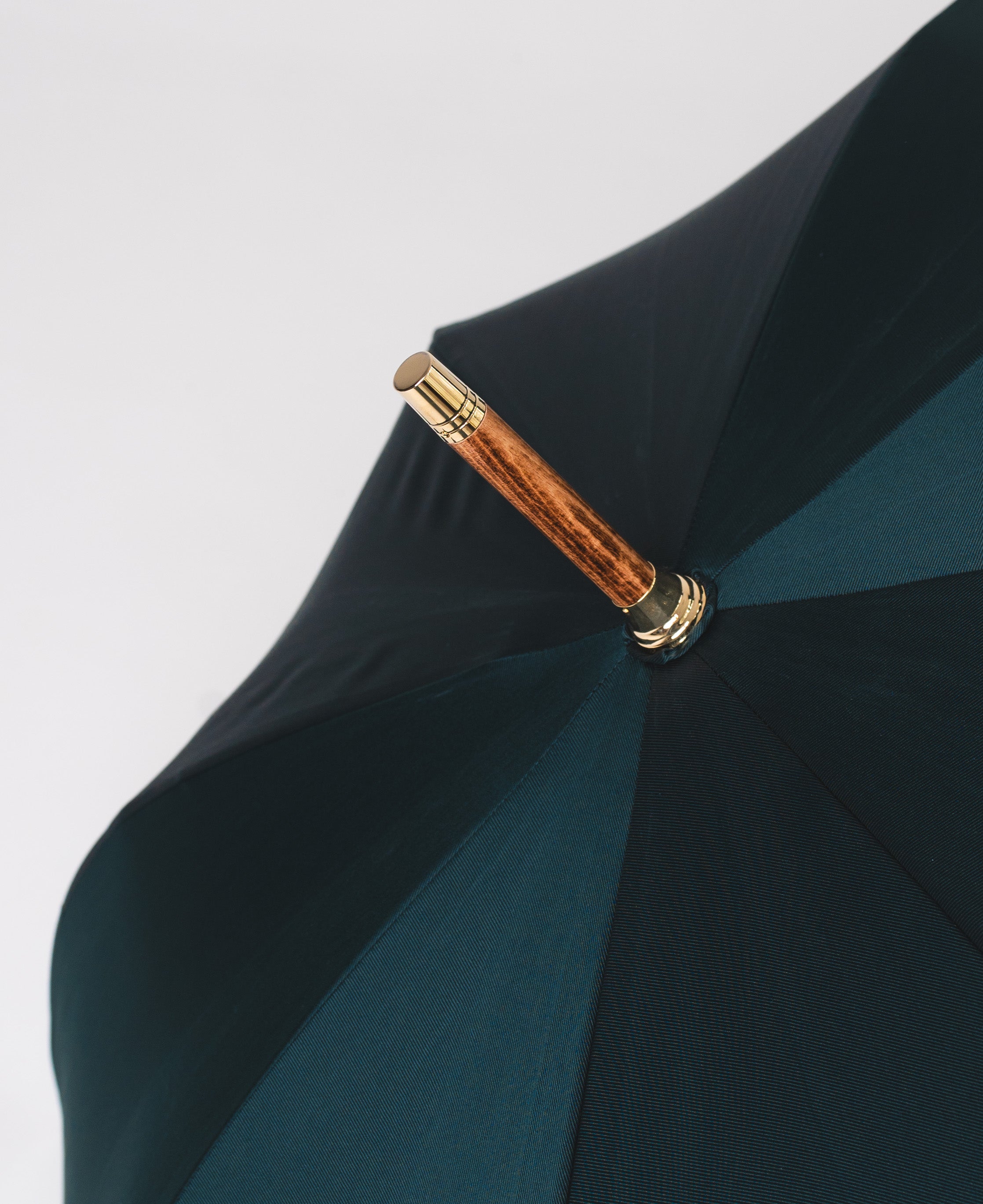 Parasol Francesco Maglia z rączką z drewna bukowego pokrytego skórą i czaszą w kolorze butelkowozielonym