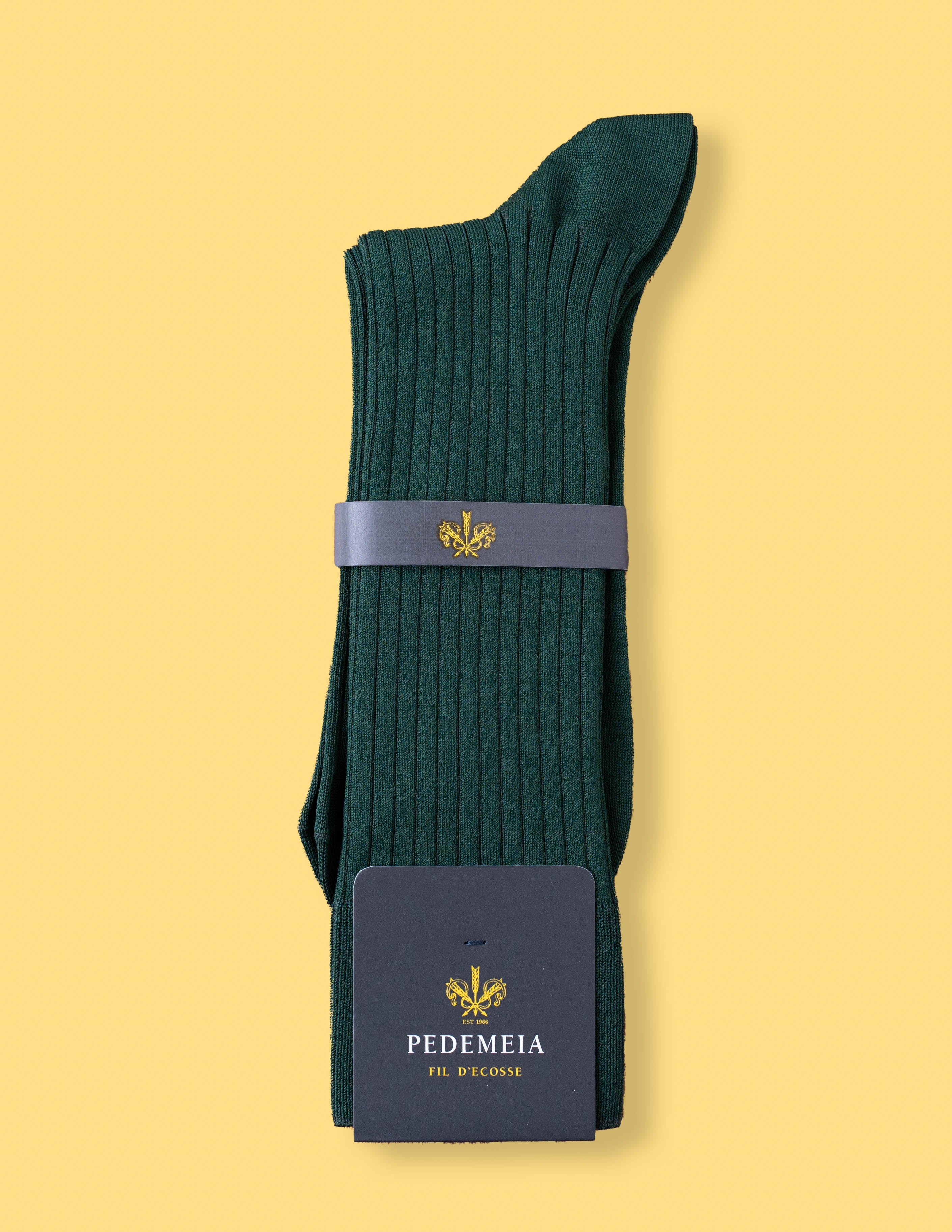 Zieleń butelkowa to kolor, który łączy świeżość z powagą. Te skarpetki z linii basics są dowodem na to, że nawet drobne detale mogą mieć znaczenie. Wysokiej jakości bawełna fil d’écosse zapewnia komfort przez cały dzień, a klasyczne prążki dodają lekkości każdemu zestawowi – od casualowych chinosów po klasyczne spodnie wełniane.