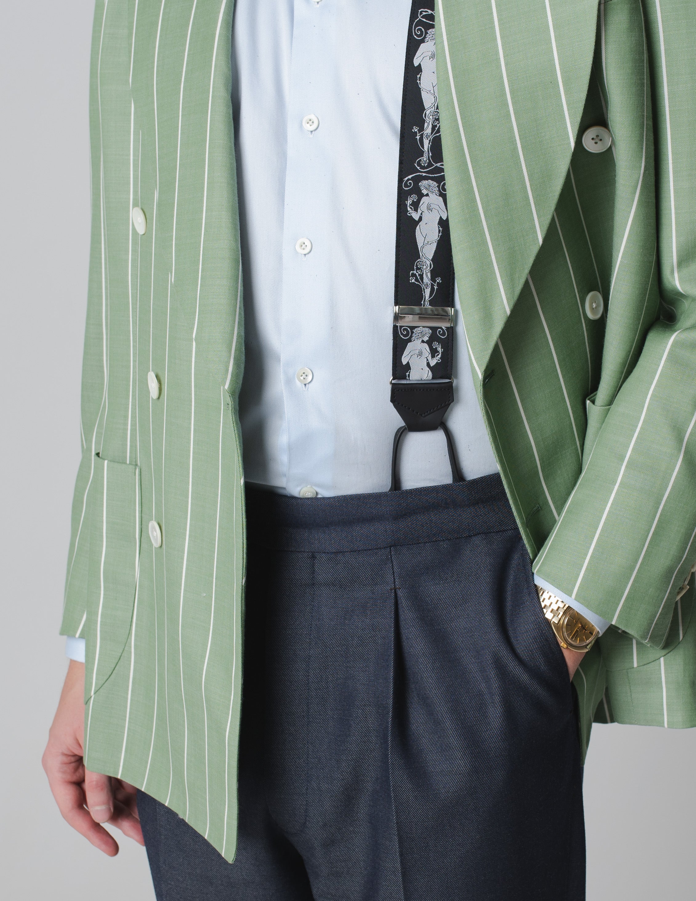 Szelki Albert Thurston "Art Nouveau Elegance" to wyjątkowe akcesorium dla mężczyzn, którzy cenią sztukę i wyrafinowaną estetykę. Wykonane ręcznie w prestiżowej angielskiej manufakturze z ponad 200-letnią tradycją, te szelki są symbolem doskonałości rzemiosła i niepowtarzalnego stylu. Produkty Albert Thurston, znane z obecności w filmach takich jak James Bond i Wilk z Wall Street, są synonimem luksusu i tradycji.