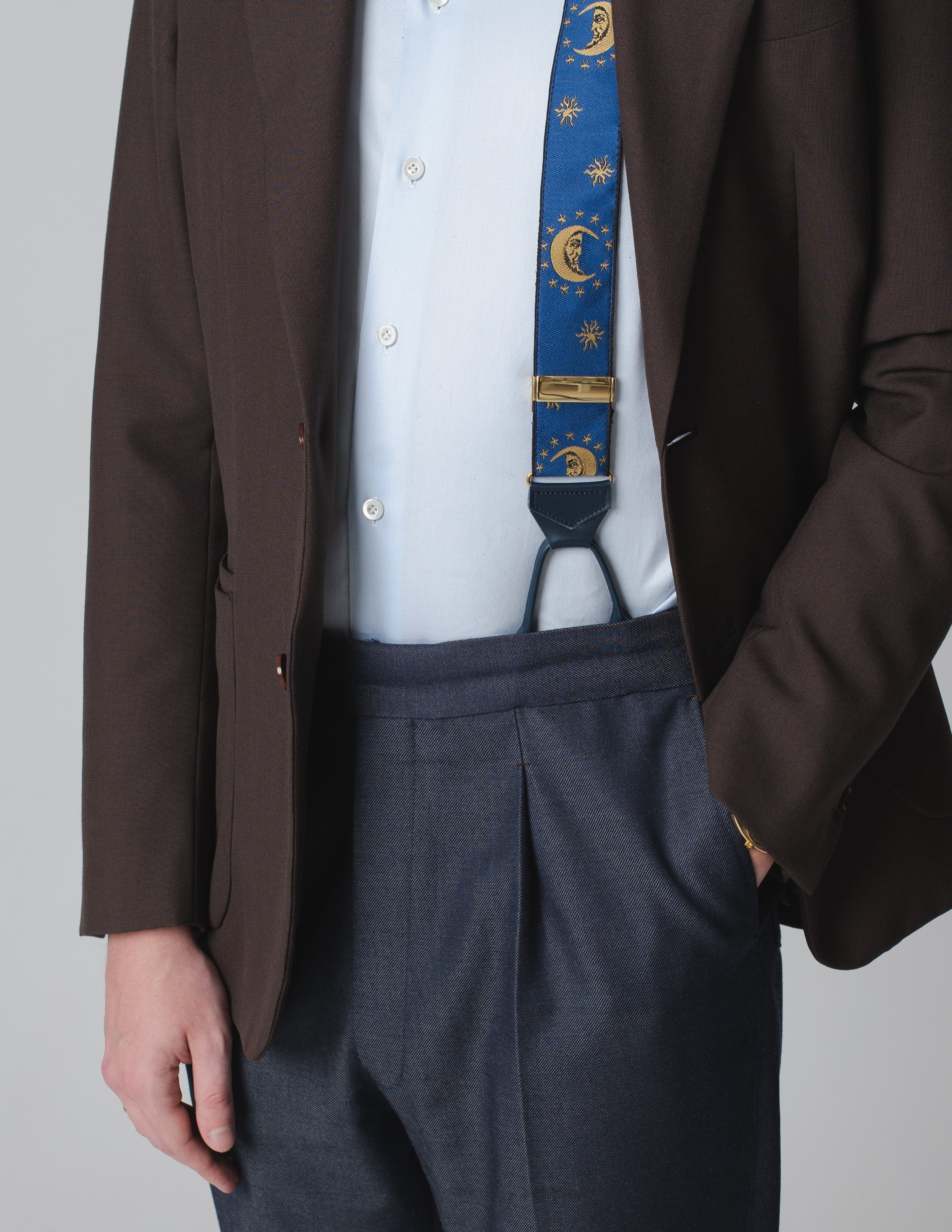 Wprowadź odrobinę magii do swojej garderoby dzięki szelkom Albert Thurston "Lunar Elegance". Te ręcznie wykonane szelki to dzieło renomowanej angielskiej manufaktury, która od ponad 200 lat tworzy akcesoria będące symbolem luksusu i niezrównanej jakości. Produkty Albert Thurston zyskały światowy rozgłos dzięki pojawieniom w kultowych filmach, takich jak James Bond czy Wilk z Wall Street.