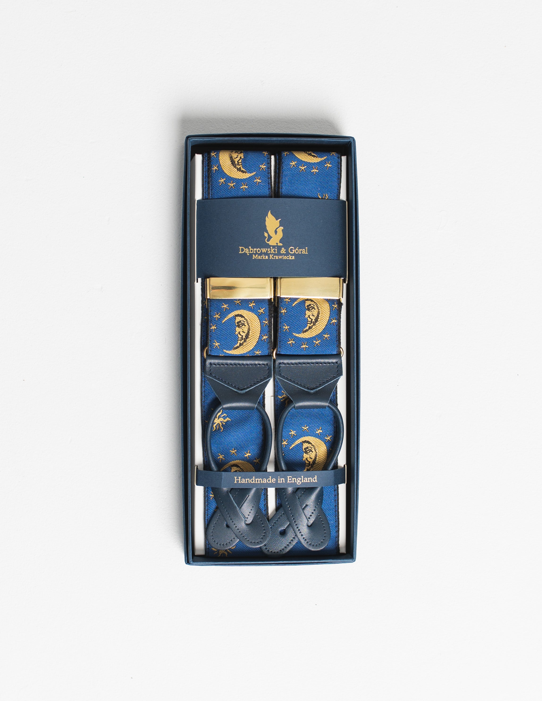 Wybierz szelki "Lunar Elegance", by dodać swoim stylizacjom niepowtarzalnego charakteru i subtelnego blasku. Idealne na wieczorne spotkania, formalne okazje czy codzienne wyjścia z nutą wyjątkowości. Brytyjska tradycja spotyka się tu z artystyczną finezją.