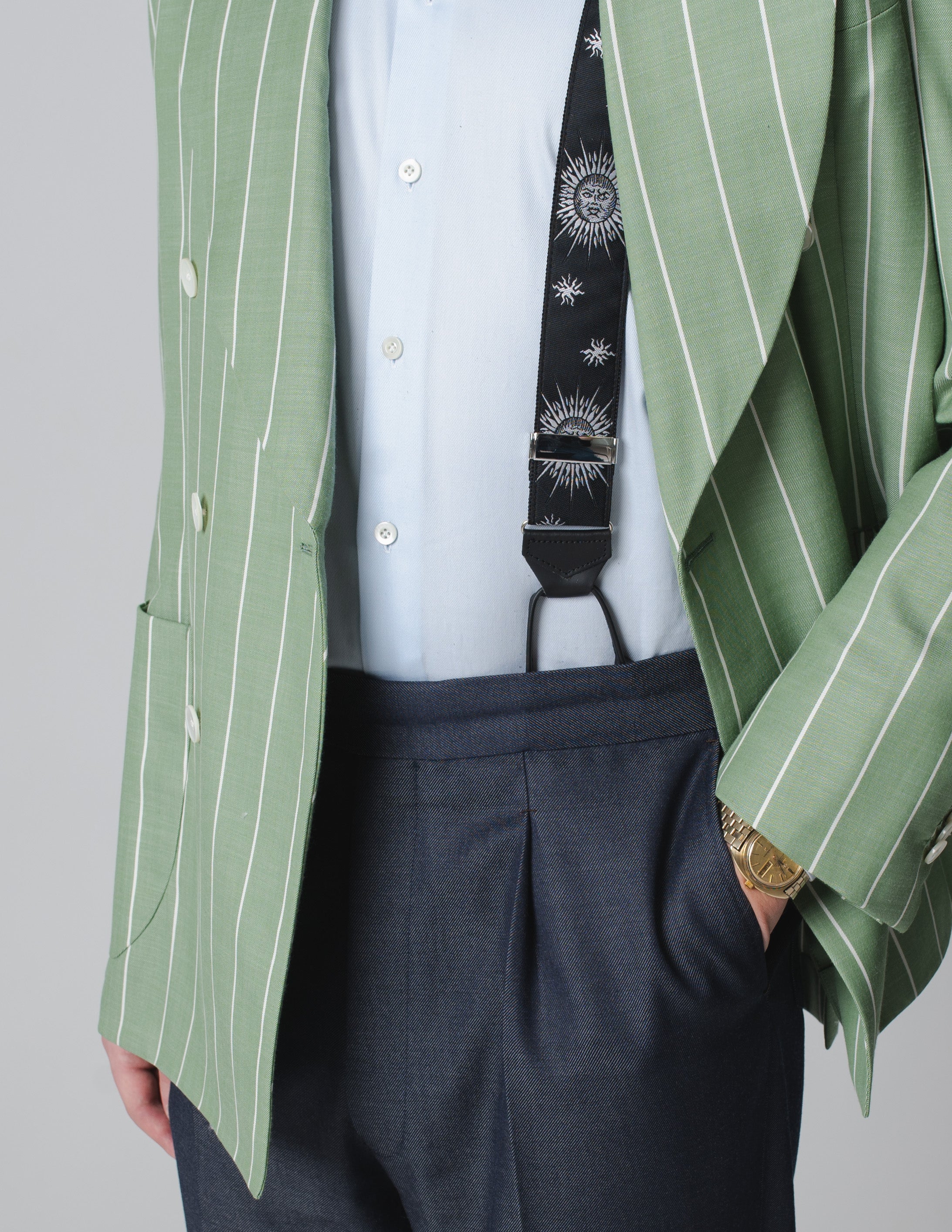 Idealne na wieczorne wyjścia, formalne okazje czy stylizacje z artystycznym akcentem, szelki "Solar Eclipse" dodadzą Twojej marynarce odrobinę kosmicznego blasku. Wybierz ten model, by podkreślić swój indywidualizm i wyrafinowany gust, jednocześnie nosząc akcesorium o brytyjskim dziedzictwie.