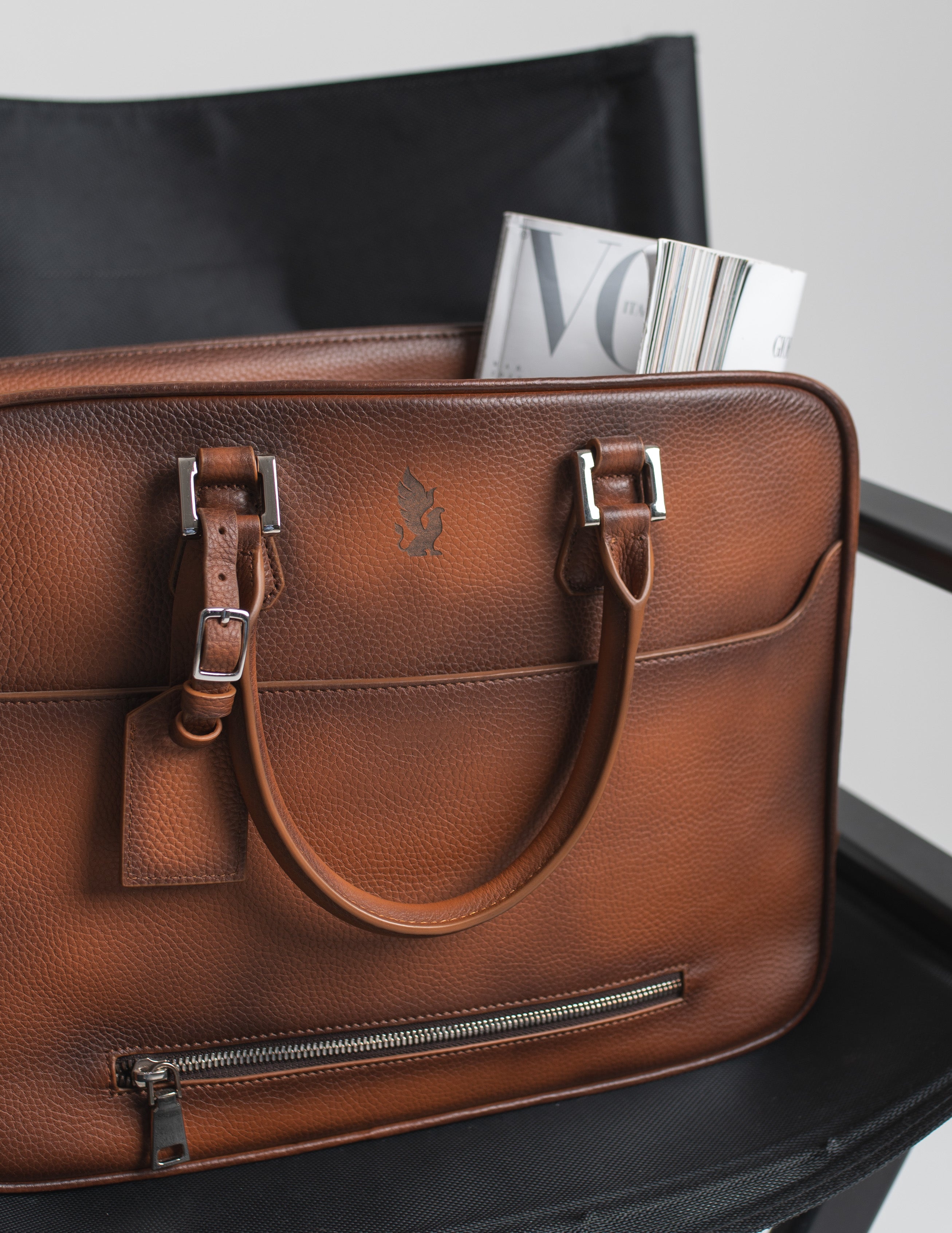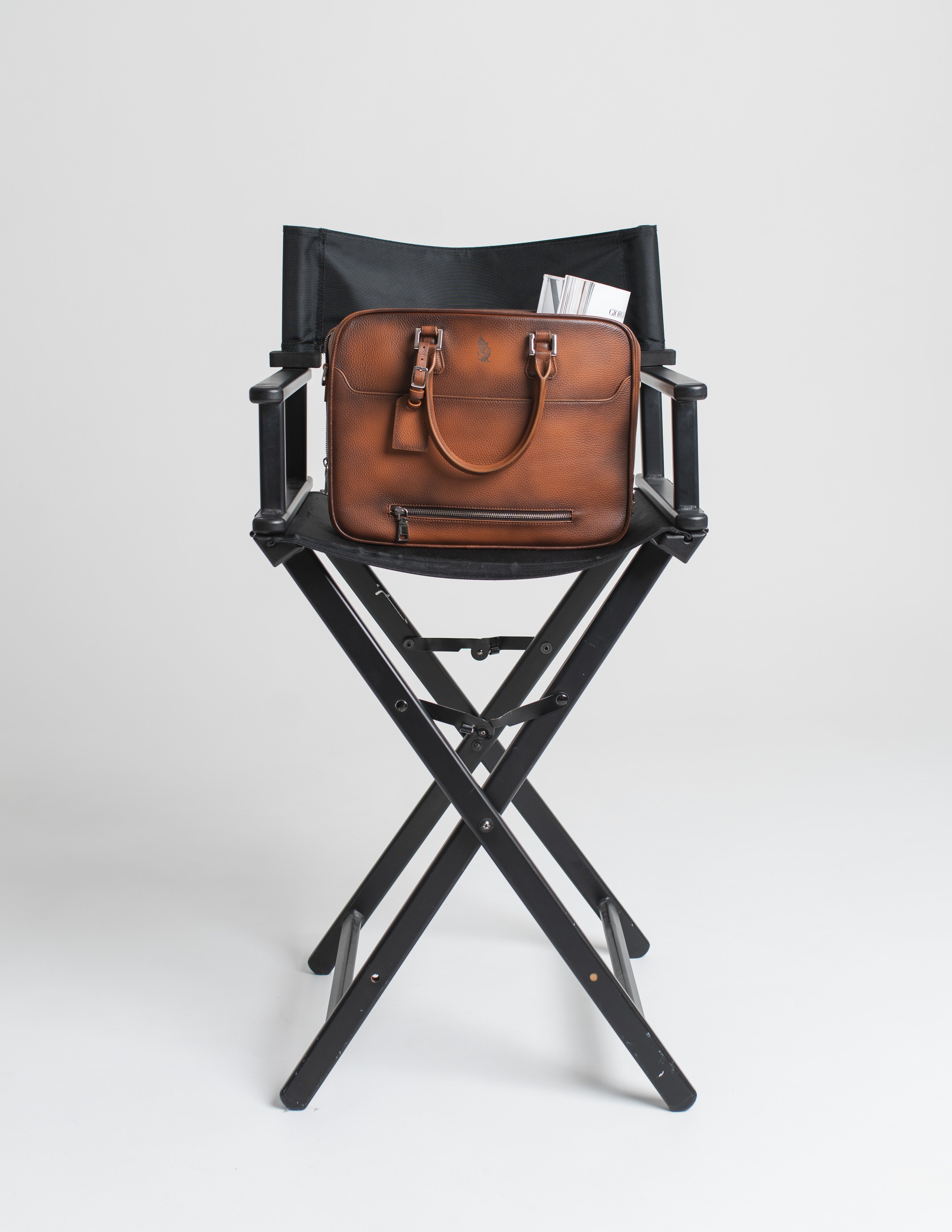 Wykonana z tłoczonej cielęcej skóry z hiszpańskiej garbarni. Przemyślane wnętrze wykończone materiałem przypominającym alkantarę mieści przegrodę na laptopa, miejsce na pióro i zapinaną kieszeń na najważniejsze drobiazgi.