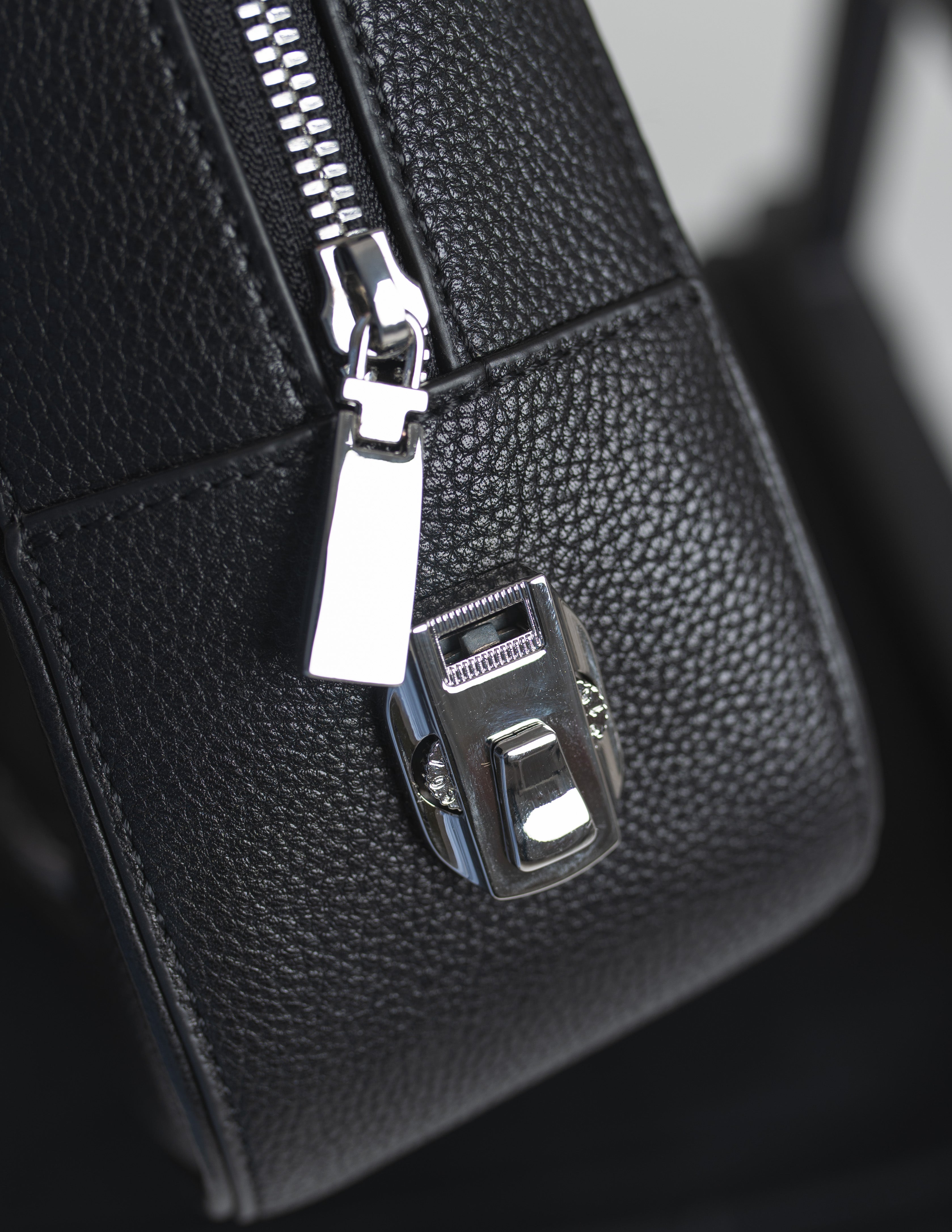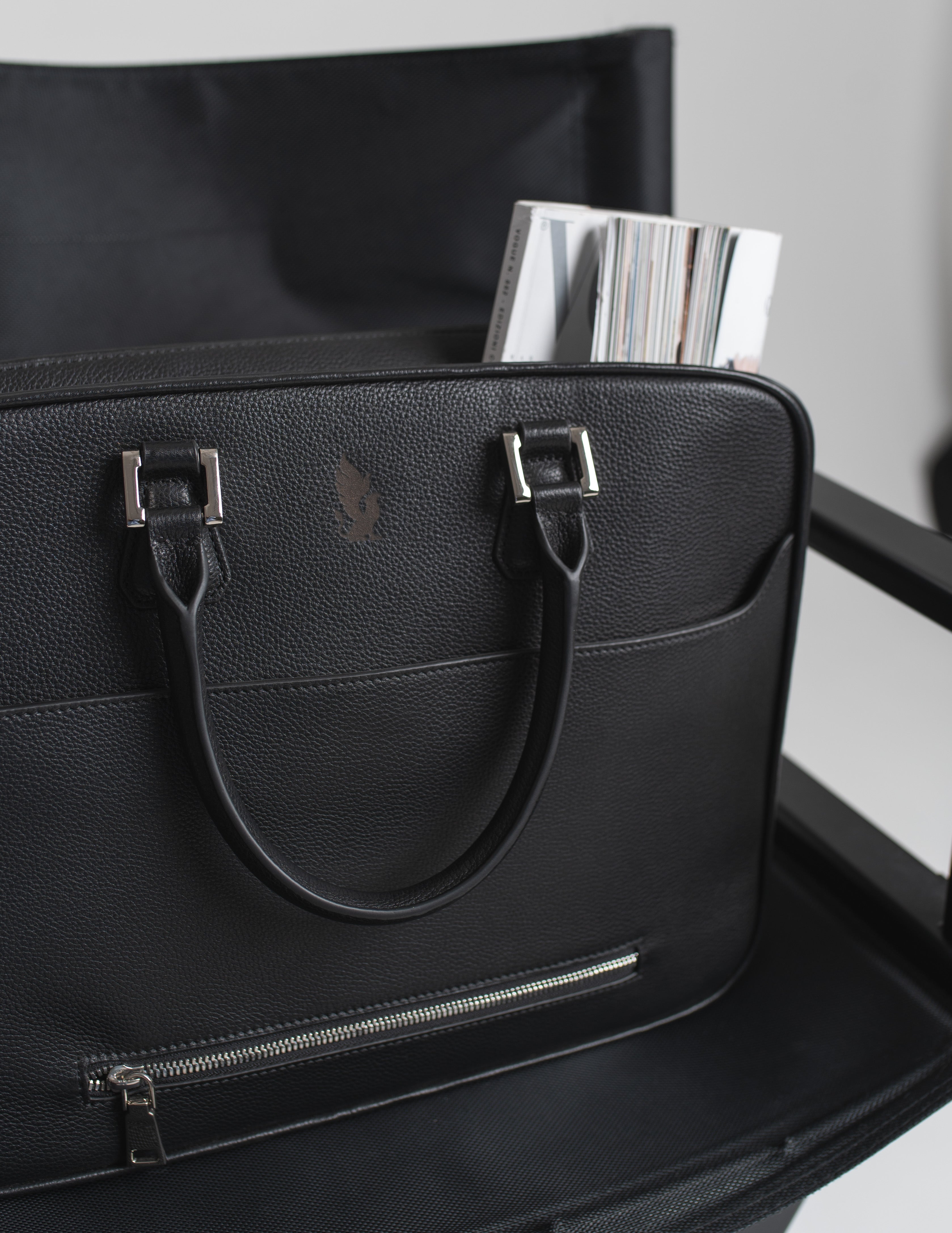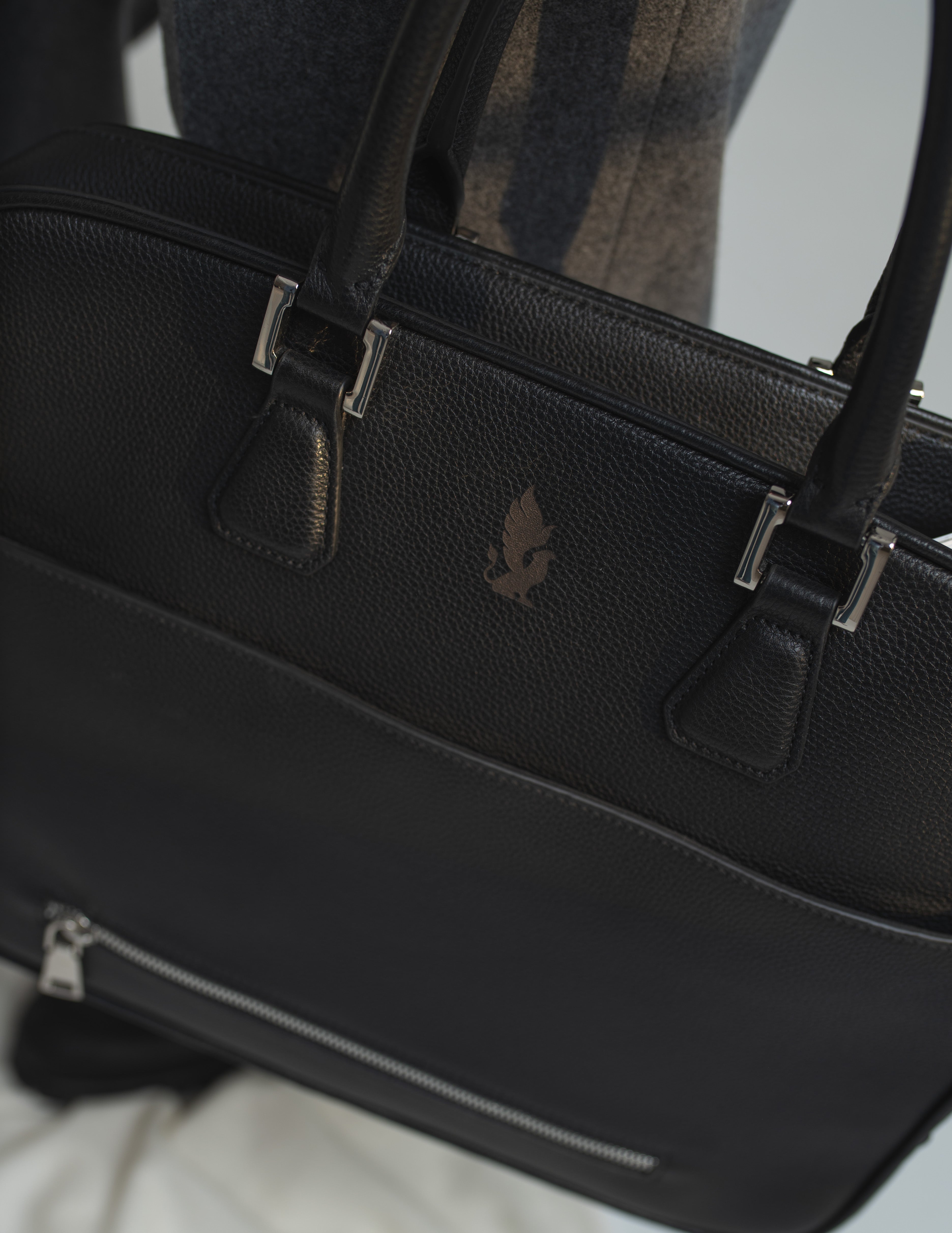 Wykonana z tłoczonej cielęcej skóry z hiszpańskiej garbarni. Przemyślane wnętrze wykończone materiałem przypominającym alkantarę mieści przegrodę na laptopa, miejsce na pióro i zapinaną kieszeń na najważniejsze drobiazgi.